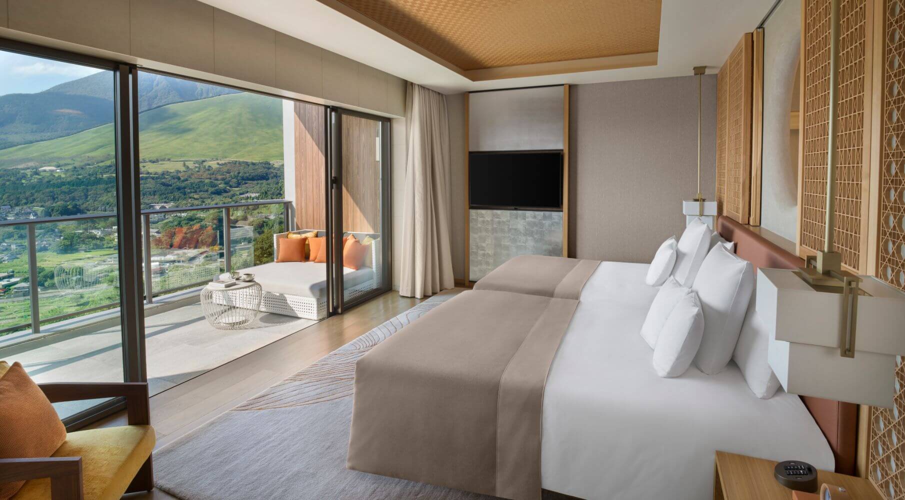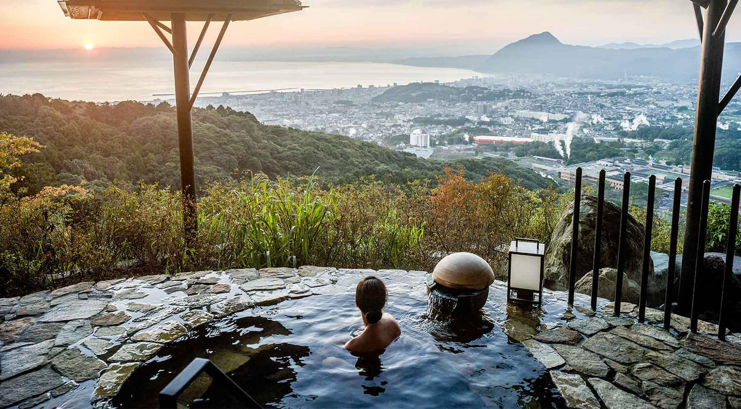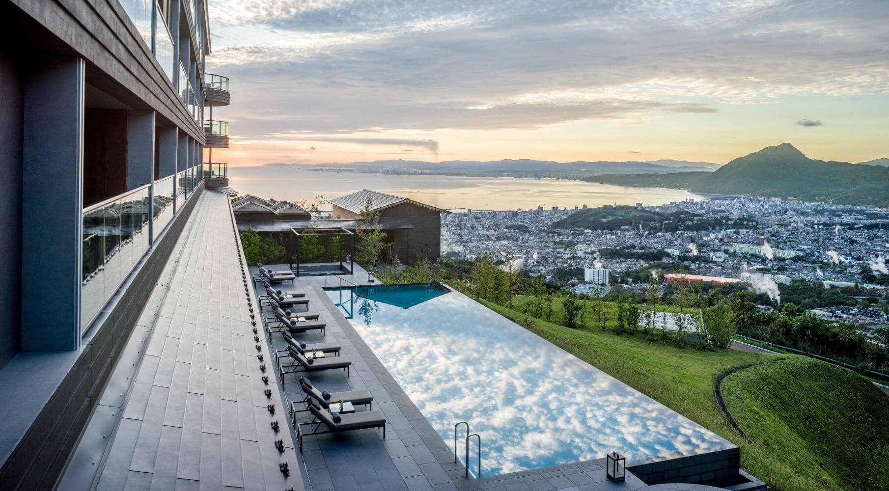 ➤ 這座現代化渡假村坐落在山丘上,俯瞰日本最有名的溫泉之鄉別府,還可一覽蔥鬱的群山及廣闊的海灣