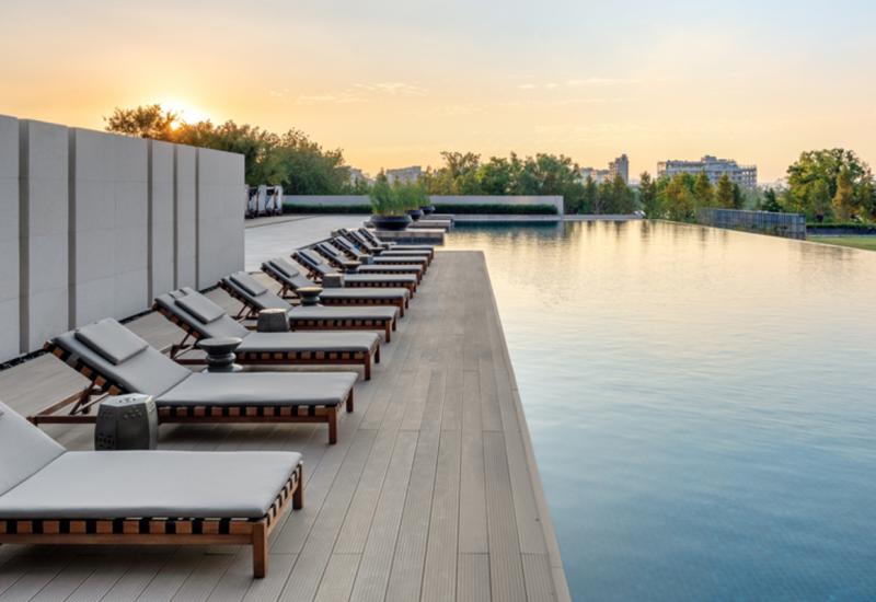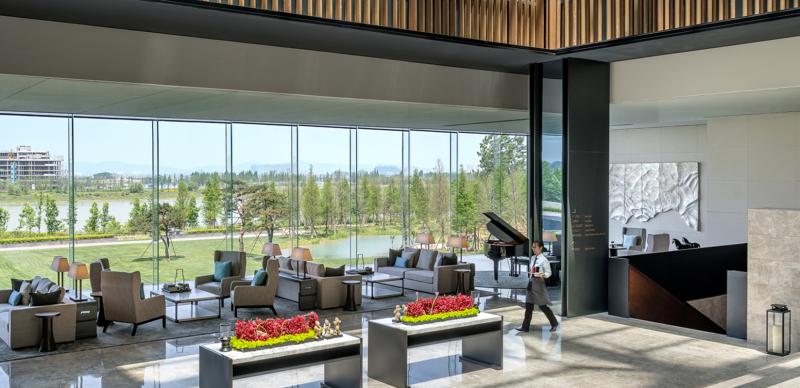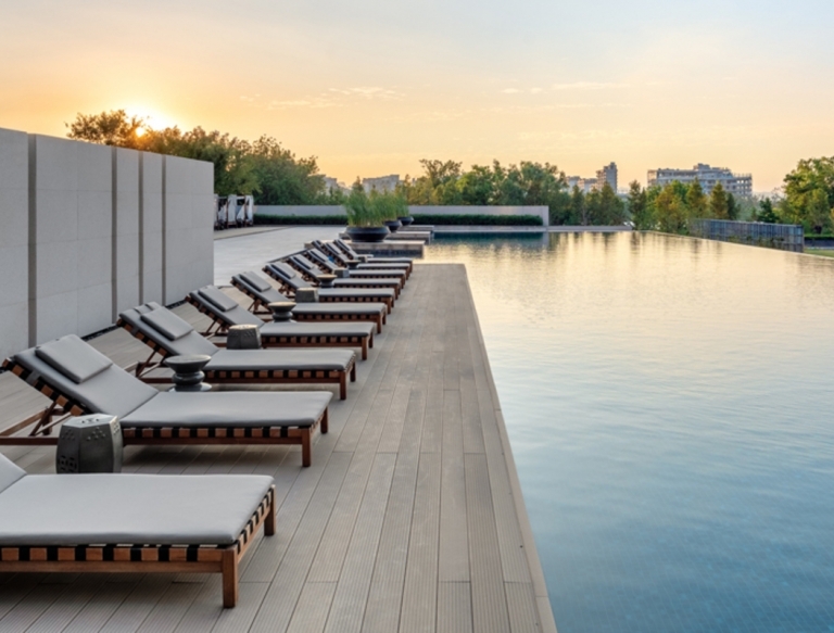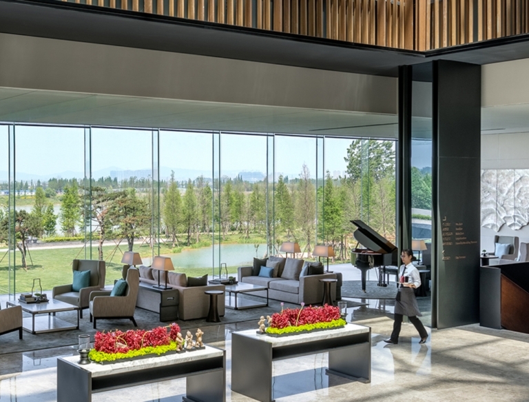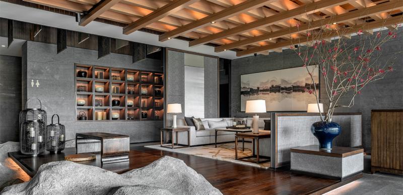 南京涵碧樓建築設計以獨特地形營造中國院牆圍合的皇城風格,結合獨有水景文化與竹林元素;同時傳承品牌一貫主打靜心自然的原生體驗,堅持使用自然素材來營造空間、光線與建築間的靈活變化,傳遞靜謐平和的渡假氛圍。