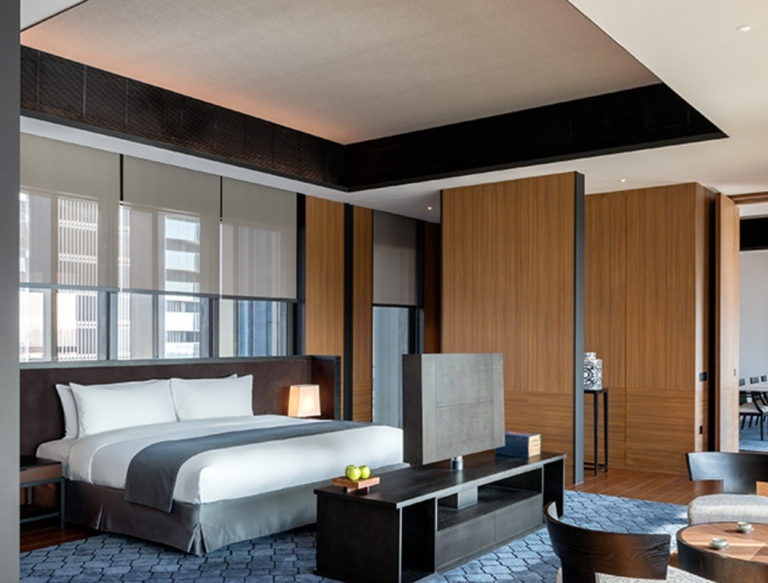 規劃282間套房,可前眺浩瀚長江,側望繁華市景。閒暇之餘小憩於露臺躺椅,亦可充分感受「孤帆遠影碧山盡,唯見長江天際流」的無窮景觀。
